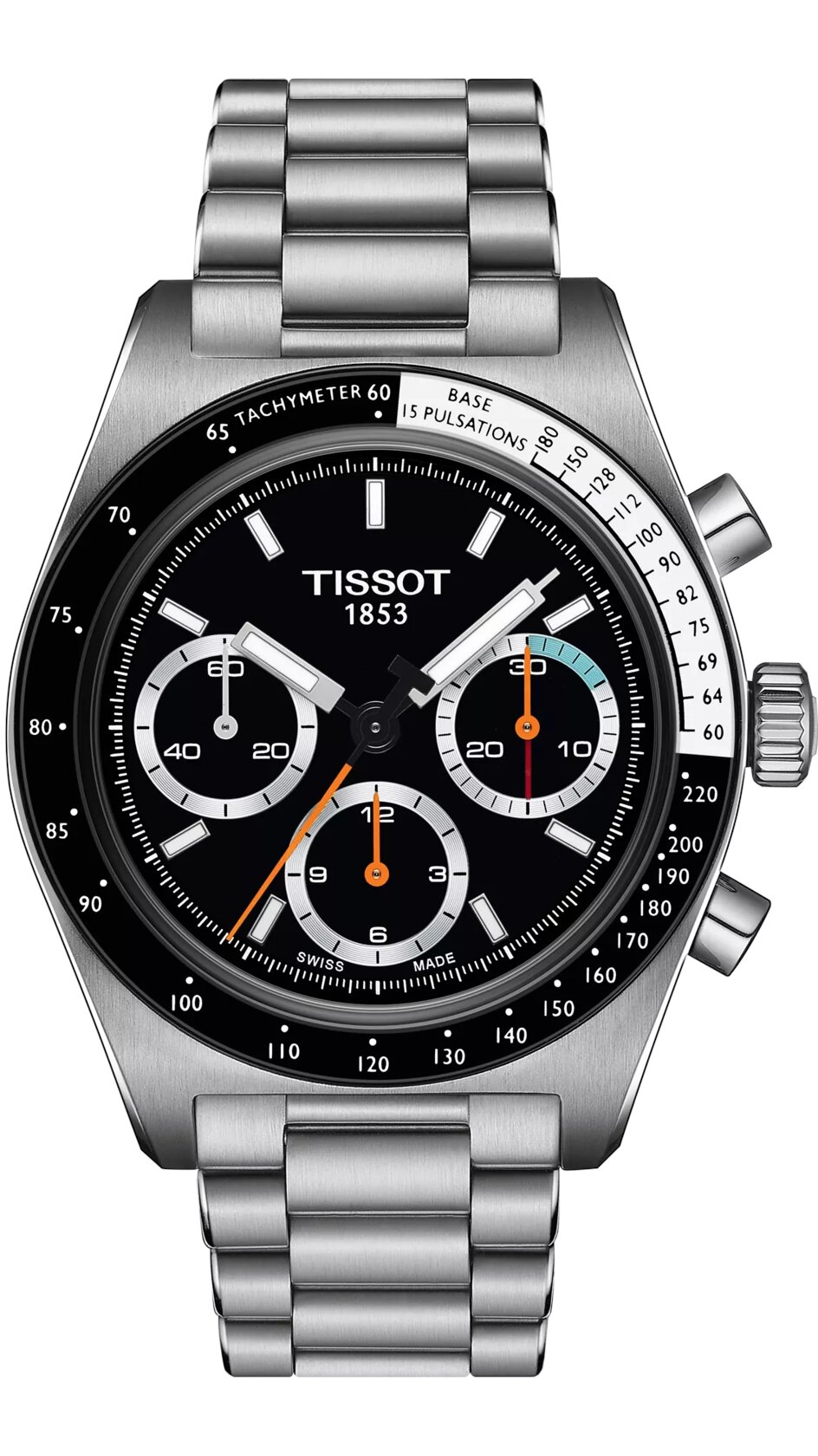 Χρονογράφος του οίκου Tissot, της σειράς PR516 με μαύρο καντράν και ατσάλινο μπρασελέ. Κάσα από ανοξοόδωτο ατσάλι. Επίπεδο στεγανότητας στα 100 μέτρα και μέγεθος πλαισίου 41mm από ανοξείδωτο ατσάλι 316L. Αντιχαρακτικό κρύσταλλο σαπφείρου με αντιανακλαστική επίστρωση. Ελβετικός μηχανισμός μηχανικός με αυτονομία εώς και 68 ώρες. Εμφανής μηχανισμός στην πίσω όψη του. Δείκτες με υλικό  Superluminova. Λειτουργίες:  Central 60-seconds chronograph hand, 30-minutes and 12-hours counters.