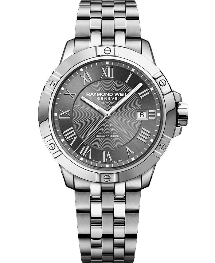 The tango collection embodies the passion that RAYMOND WEIL, the Swiss watchmaker, puts into achieving timepieces of both aesthetic sensuality of design and rhythmic perfection. With its refined and modern design, this contemporary collection appeals to both men and women. Featuring a quartz movement, the gents’ timepieces boast a sober and refined style while the ladies’ models are graced with mother of pearl and diamonds. Distinctive style with a balance of proportions, the tango watch has a distinguishing signature bezel featuring six decorative screws. Functionality marries with sensual design, making this a watch worn to suit any occasion.