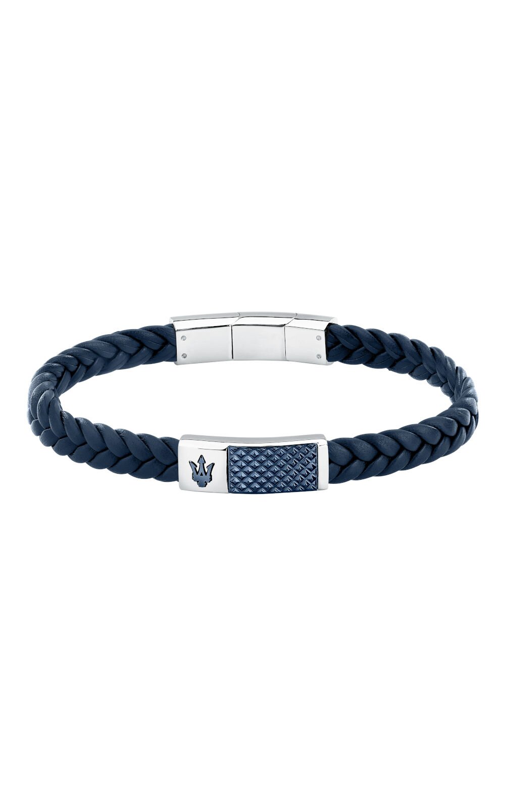 Ανδρικό βραχιόλι MASERATI με μπλε δερμάτινο λουράκι. To βραχιόλι έχει ασημένιες και μπλε λεπτομέρειες από ανοξείδωτο ατσάλι και το λογότυπο της εταιρείας (19+1cm). Συνοδεύεται από Πιστοποιητικό Αυθεντικότητας Maserati σε επίσημη συσκευασία Maserati.