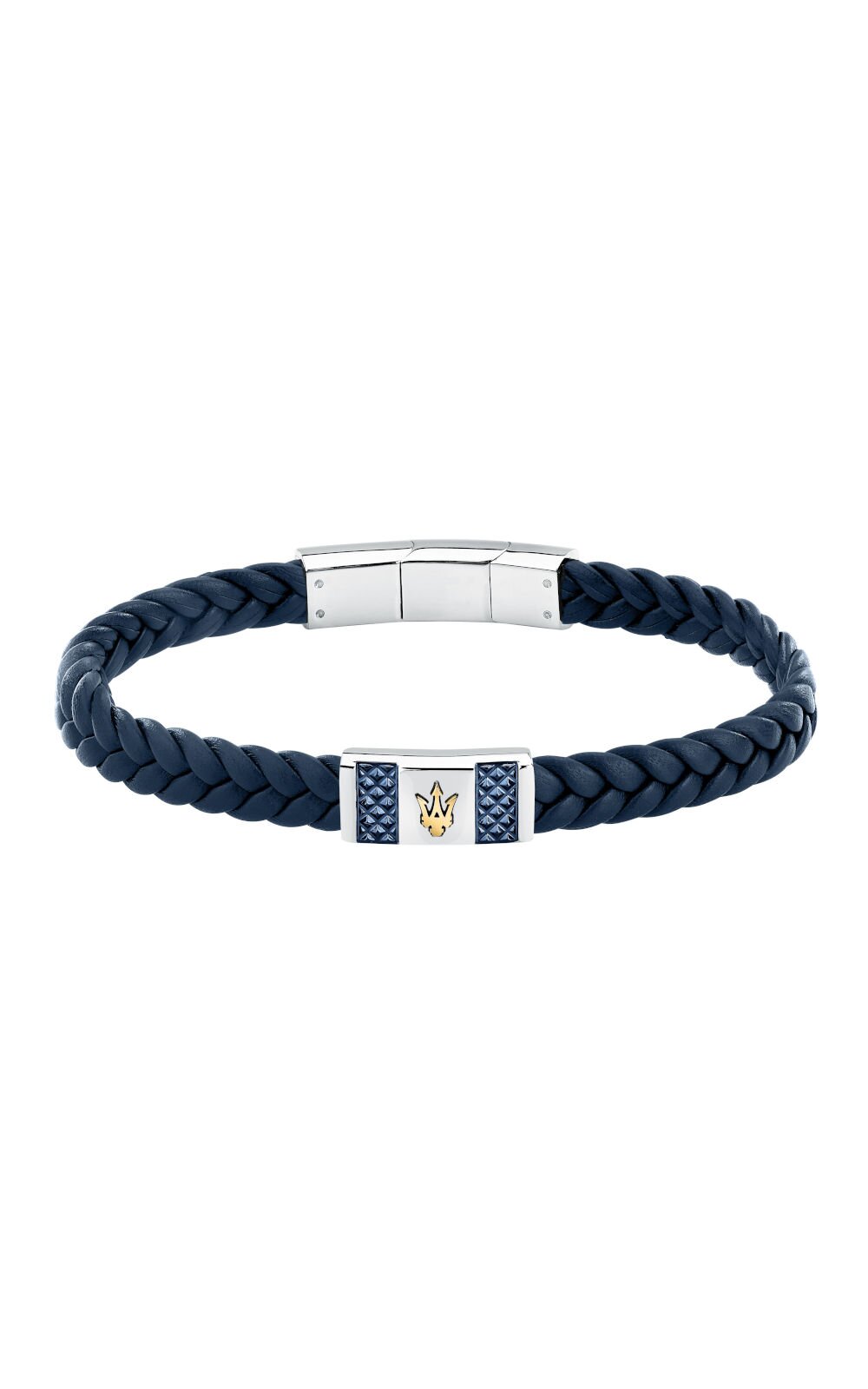Ανδρικό βραχιόλι MASERATI με μπλε δερμάτινο λουράκι. To βραχιόλι έχει ασημένιες και μπλε λεπτομέρειες από ανοξείδωτο ατσάλι και το λογότυπο της εταιρείας (19+1cm). Συνοδεύεται από Πιστοποιητικό Αυθεντικότητας Maserati σε επίσημη συσκευασία Maserati.