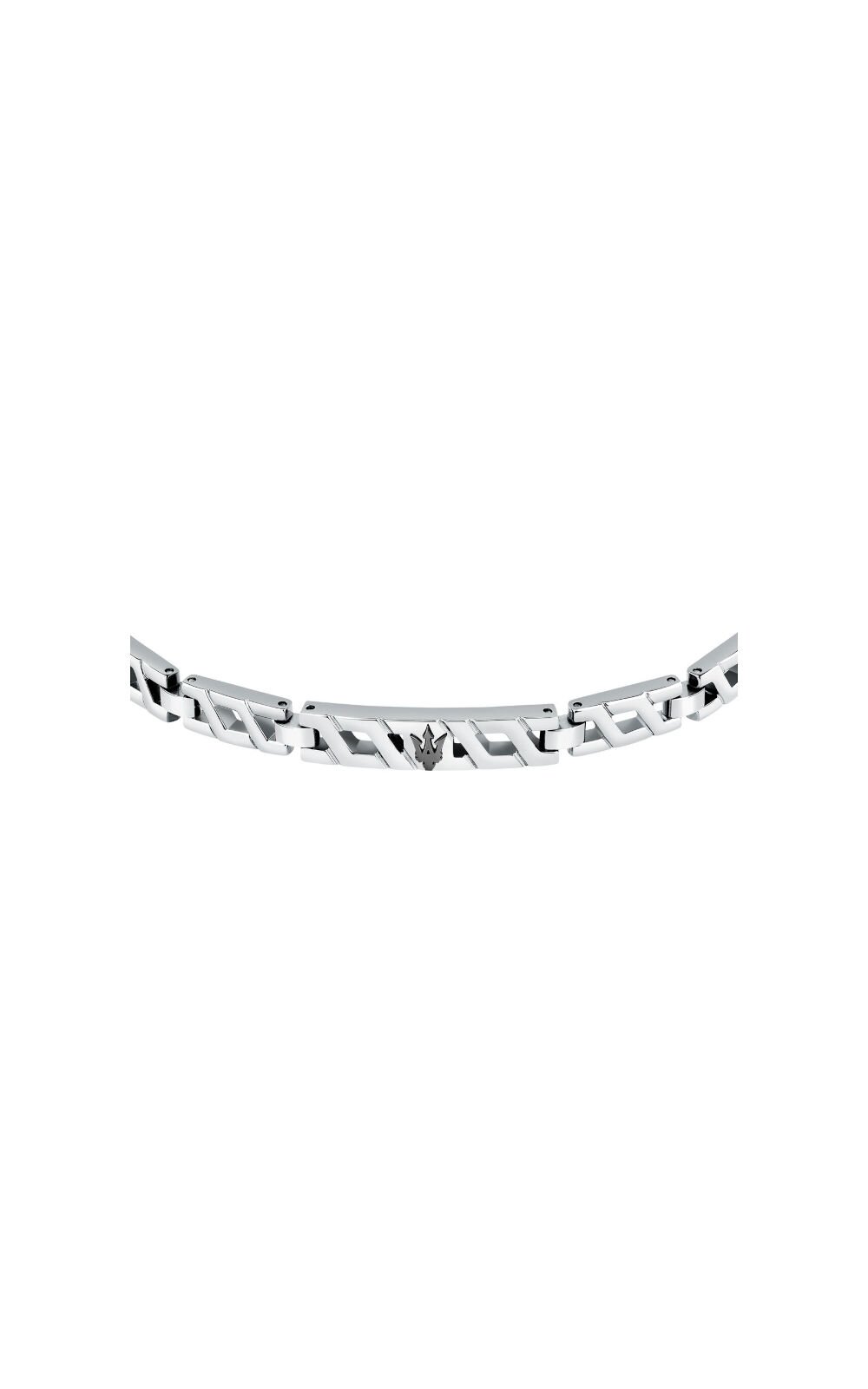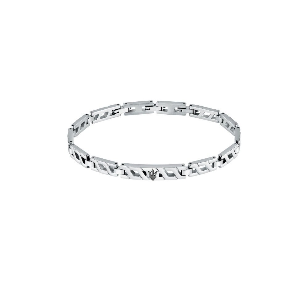 Ανδρικό βραχιόλι MASERATI από ανοξείδωτο ατσάλι. To βραχιόλι είναι ασημένιου χρώματος, έχει σχέδιο μαύρη τρίαινα και λογότυπο της εταιρείας (18,5+3cm). Συνοδεύεται από Πιστοποιητικό Αυθεντικότητας Maserati σε επίσημη συσκευασία Maserati.
