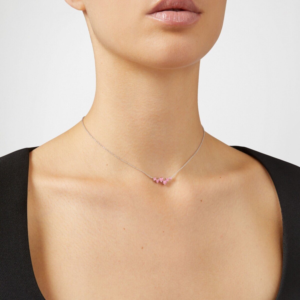 CHIARA FERRAGNI Kολιέ Καρδιές Επιπλατινωμένο Ασήμι 925 με Ροζ Κρύσταλλα