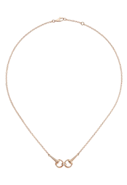 Η Gucci γιορτάζει την 20ή επέτειο της σειράς κοσμημάτων Horsebit, παρουσιάζοντας το χρυσό αυτό κολιέ από ροζ χρυσό Κ18, που ξεχωρίζει για το χαρακρητιστικό σχέδιο "πετάλου αλόγου" με το αστραφτερό μπριγιάν στη μέση.