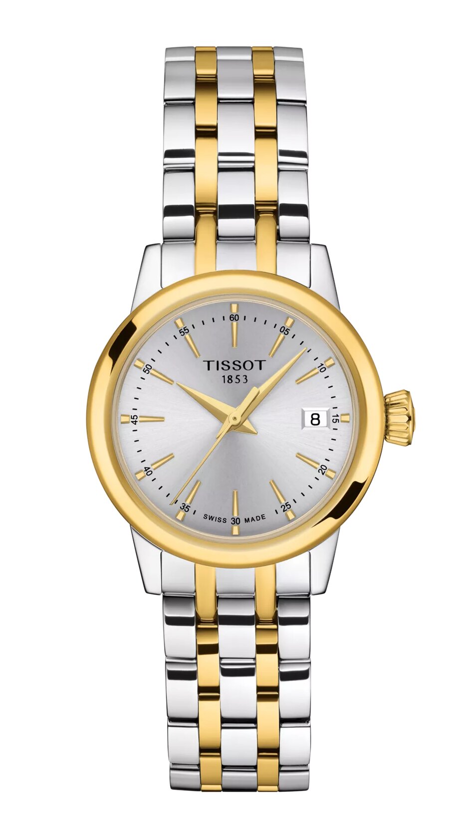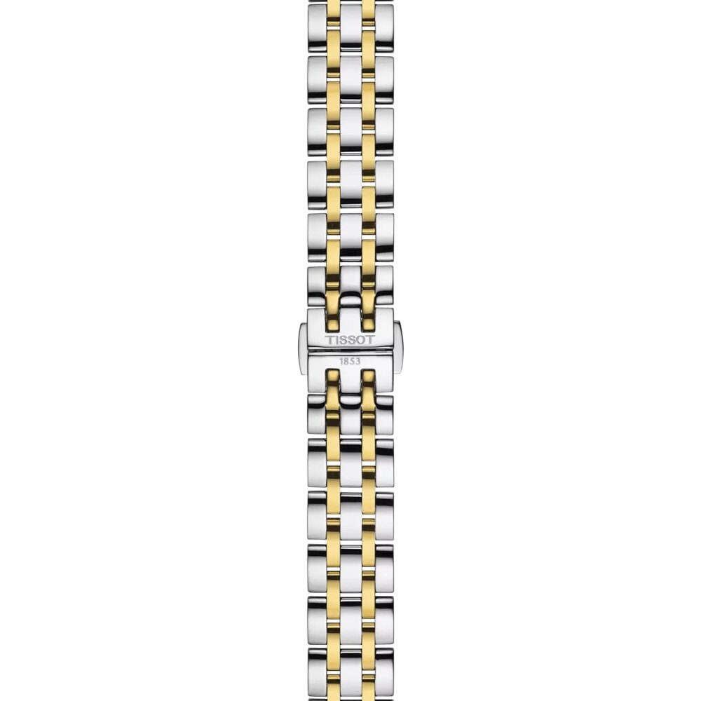 Ρολόι μπαταρίας του οίκου Tissot, της σειράς T-Classic, έκδοση Classic Dream Lady με ασημί καντράν και ατσάλινο δίχρωμο μπρασελέ. Επίπεδο στεγανότητας στα 50 μέτρα και μέγεθος πλαισίου 28mm. Αντιχαρακτικό κρύσταλλο σαπφείρου και μηχανισμός μπαταρίας ελβετικό Quartz με EOL (battery end-of-life indicator). Το μπρασελέ έχει χρυσή pvd επίστρωση και κούμπωμα πεταλούδας με πιεζόμενα κουμπιά.