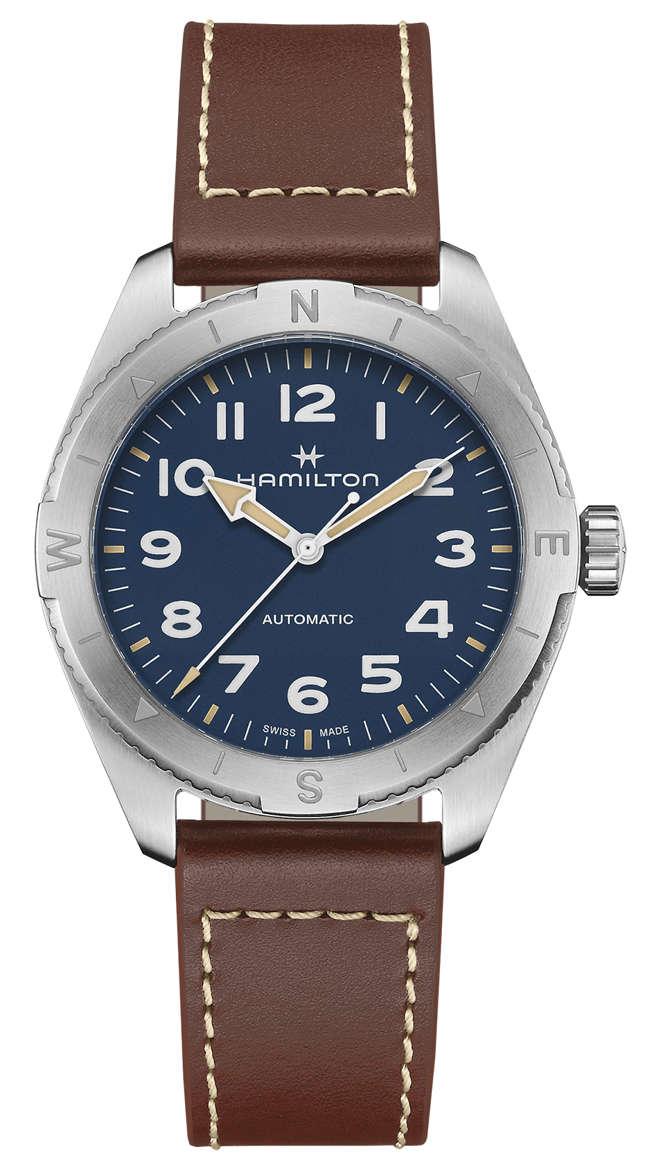 Ένα ρολόι περιπέτειας παντός εδάφους με σχέδιο πυξίδας που σας επιτρέπει να πλοηγηθείτε στην περιπέτειά σας με τη βοήθεια του ήλιου. Αυτόματο ρολόι του οίκου Hamilton της σειράς Khaki Field, με μπλε καντράν και καφέ δερμάτινο λουράκι. Διαθέτει το μηχανισμό H-10 με αυτονομία έως και 80 ώρες power reserve. Επίπεδο στεγανότητας 100m και μέγεθος πλαισίου 41mm. Το πλαίσιο είναι από ανοξείδωτο ατσάλι.