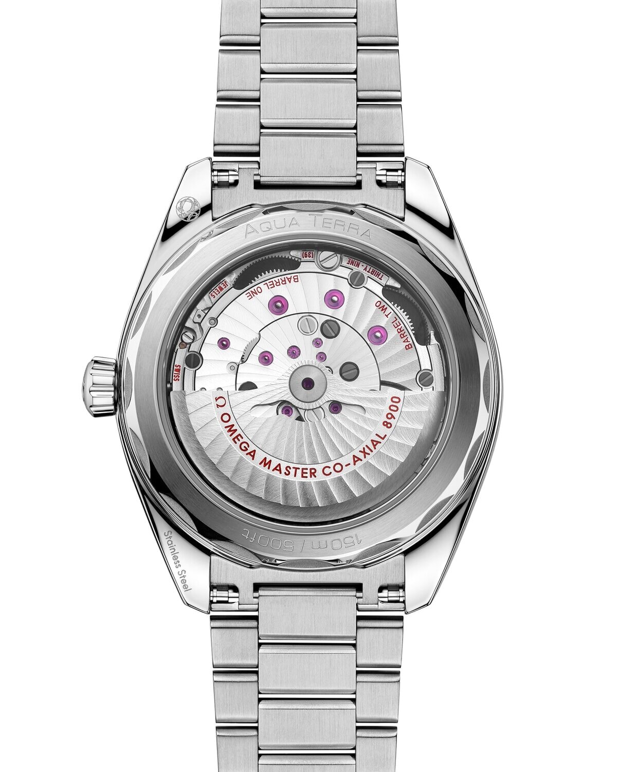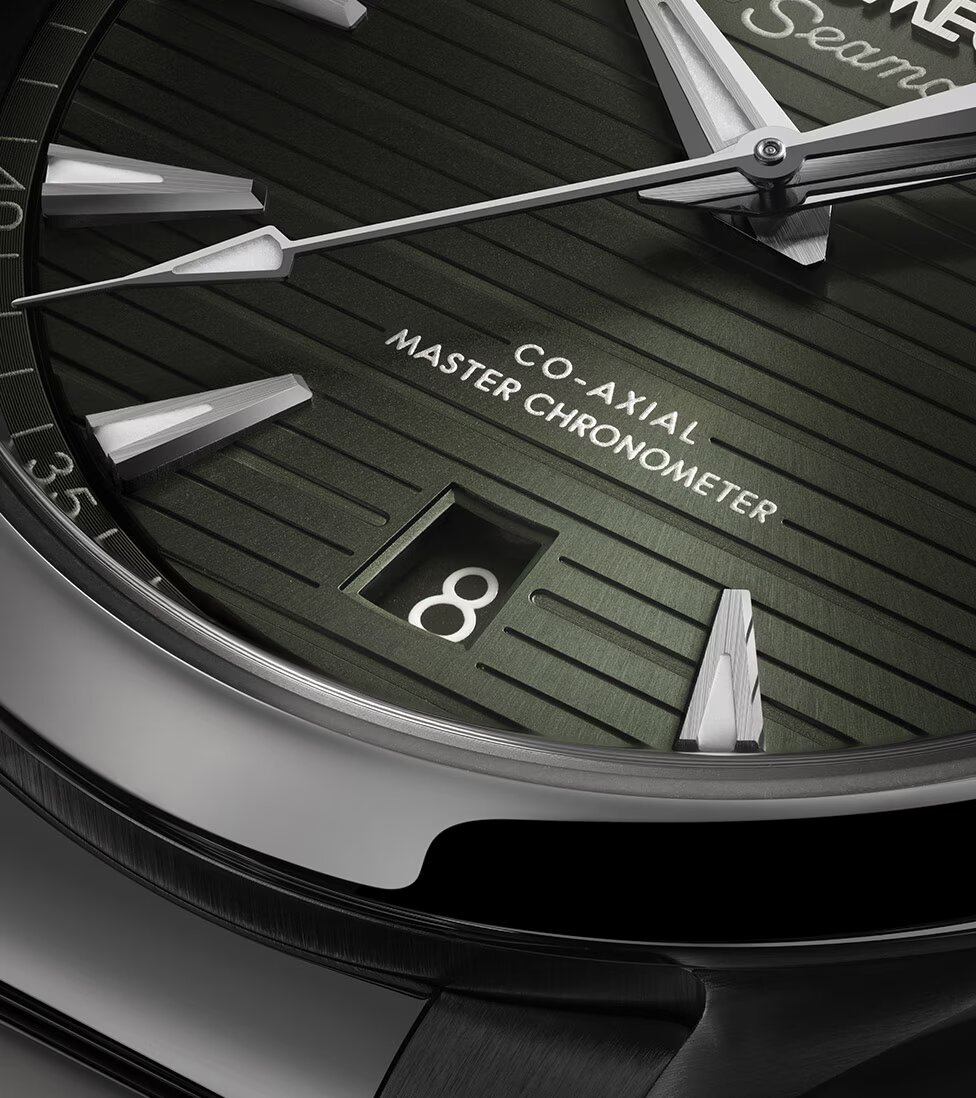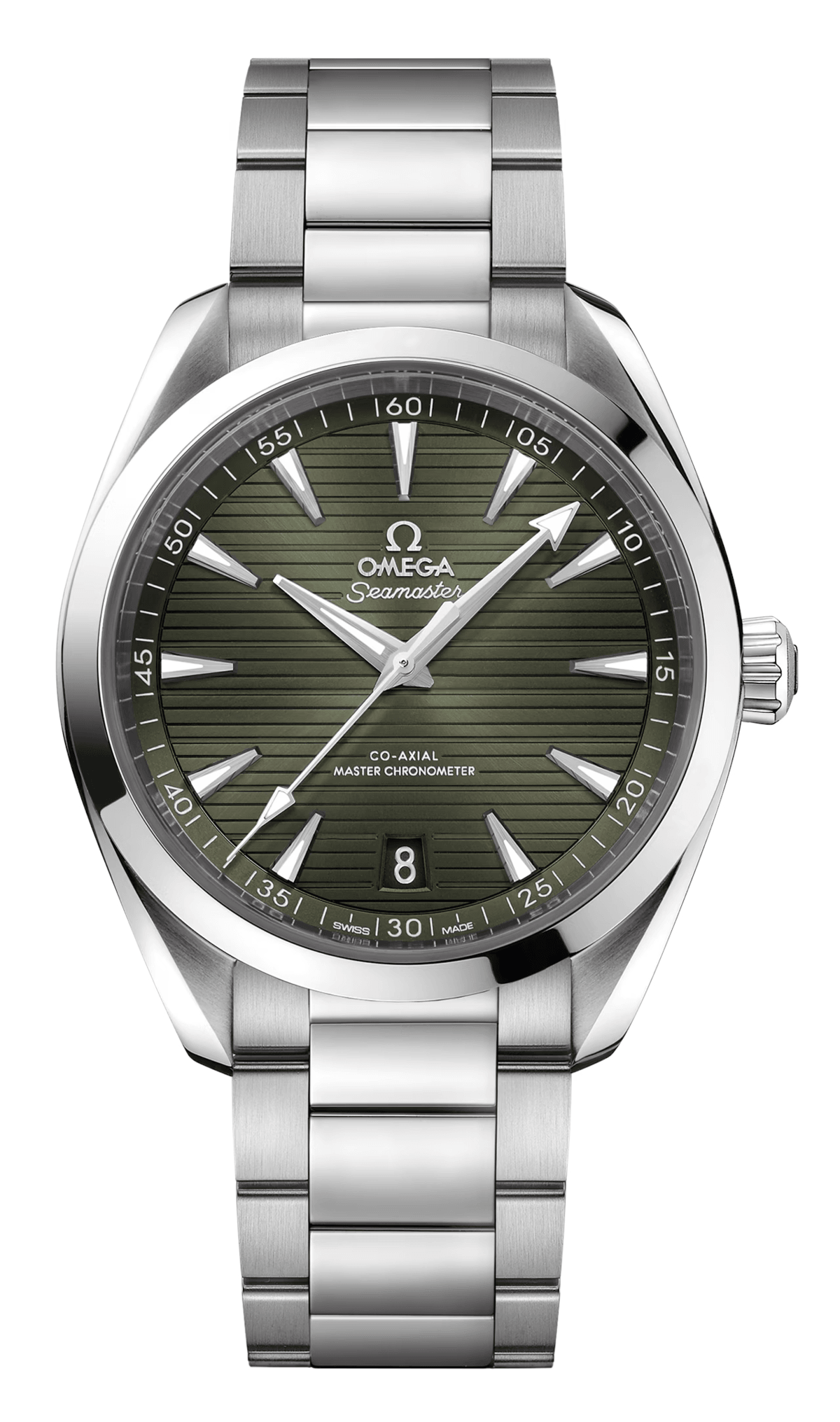 Ρολόι της Omega, σειράς Seamaster Aqua Terra 150M, αποτελεί έναν εξαιρετικό φόρο τιμής στη βαθιά ναυτική παράδοση της OMEGA. Αυτό το μοντέλο των 41mm διαθέτει συμμετρική κάσα από ανοξείδωτο ατσάλι, με βιδωτό καπάκι στο πίσω μέρος και κυματιστό σχέδιο περιμετρικά. Το καντράν είναι βερνικωμένο σε πράσινη λάκα με οριζόντιο μοτίβο εμπνευσμένο από τα ξύλινα καταστρώματα των πολυτελών ιστιοπλοϊκών. Οι δείκτες και οι ωροδείκτες, επίσης επιμεταλλωμένοι με ρόδιο, είναι γεμισμένοι με λευκή Super-LumiNova που εκπέμπει μπλε φωτεινότητα στο σκοτάδι. Τροφοδοτείται από τον μηχανισμό Co-Axial Master Chronometer Calibre 8900 της OMEGA - πιστοποιημένο στο υψηλότερο επίπεδο της βιομηχανίας από το Ελβετικό Ομοσπονδιακό Ινστιτούτο Μετρολογίας (METAS) με αυτονομία έως και 60 ώρες.