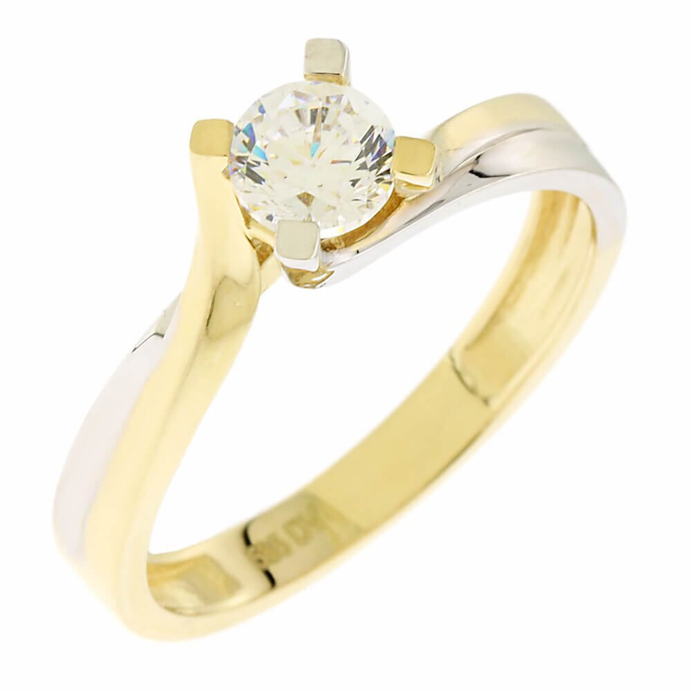Δαχτυλίδι μονόπετρο από τη Συλλογή Inglessis Collection από λευκό & κίτρινο χρυσό Κ14 με ζιργκόν.